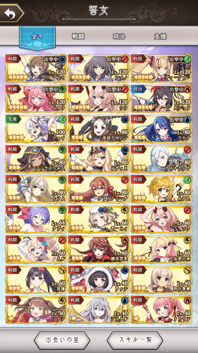 ↑最終的な1軍…運でどうにもならなかったヤツ…☆3やSRが混ざってしまう