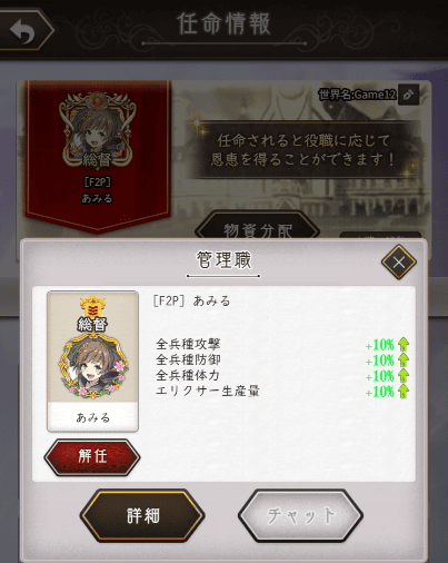 ![]() | 同盟員のお陰で総督を経験する事も出来ました☆ |
