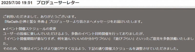 - 復活劇からの短命: 前作『巨神と誓女』が惜しまれつつ終了し、DMM GAMES 10周年記念の「復刻投票キャンペーン」で1位を獲得して華々しく復活した経緯があります。それにも関わらず、2025年3月のリリースから約8ヶ月という短期間で終了してしまったことへの無念さが強いです。