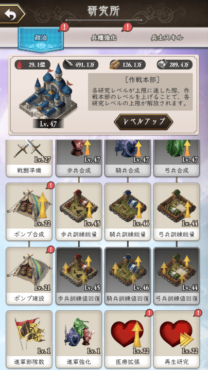 最後の1ヶ月くらいは兵士Lv上げを止めて(諦めて)割と適当に上げてました。