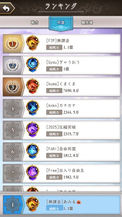 ![]() | 過疎化が進んできたあたりで僅差ですが同盟戦力1位になれました☆ |