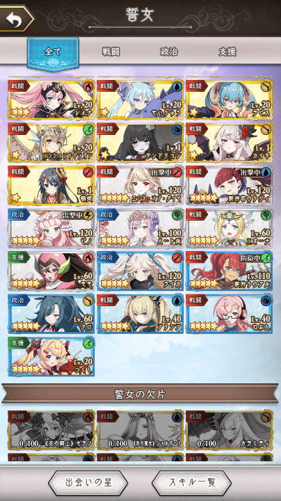 ↑誓女の所持状態 100円課金プレイヤーだったので誓女の凸不足はずっと感じてましたね…事前登録ガチャのディージェーを☆5に出来たから多少戦えてた。